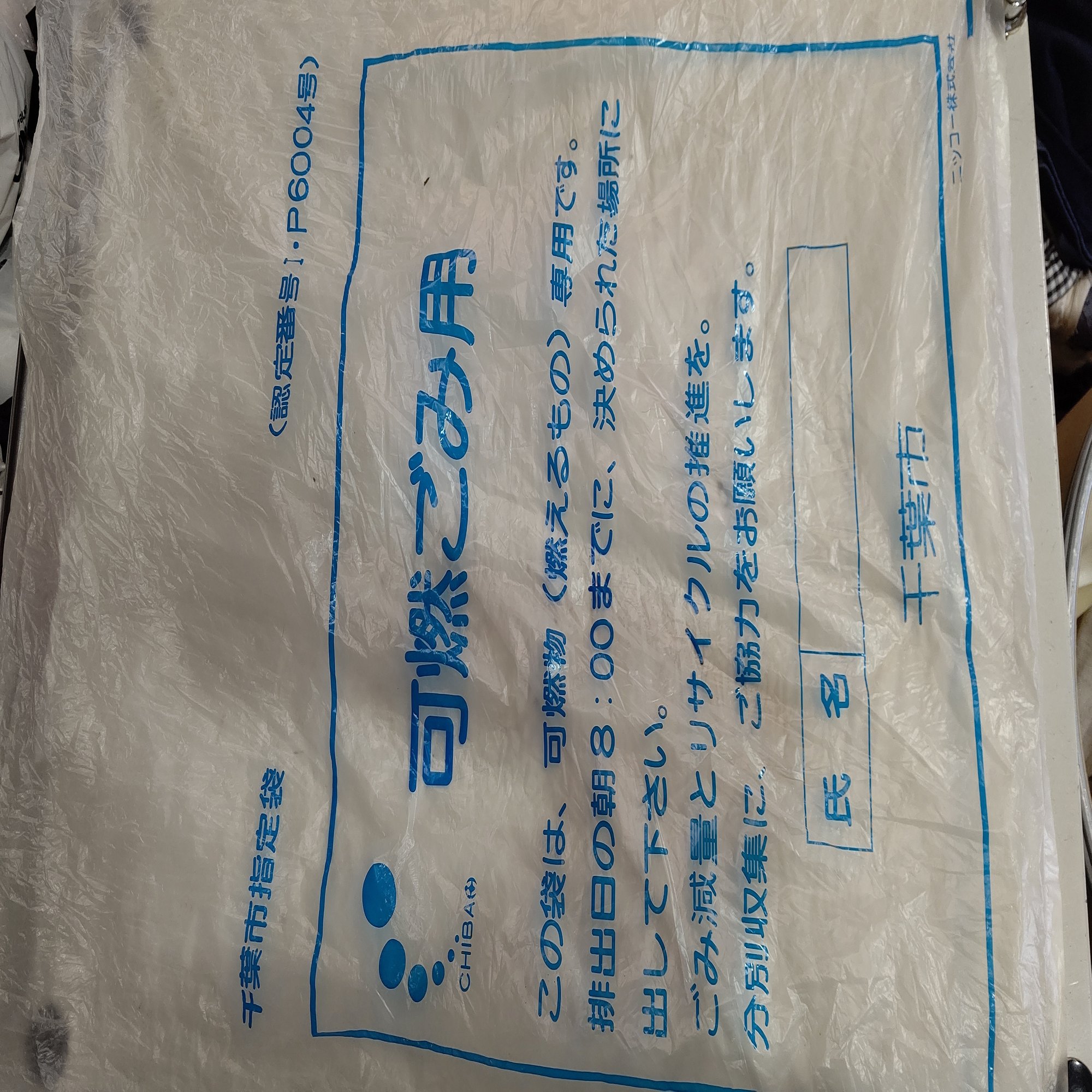 見出し画像のゴミ袋は千葉県千葉市の物。可燃ごみ用のゴミ袋。記名式だ。それ以外には特徴のない、シンプルなゴミ袋。