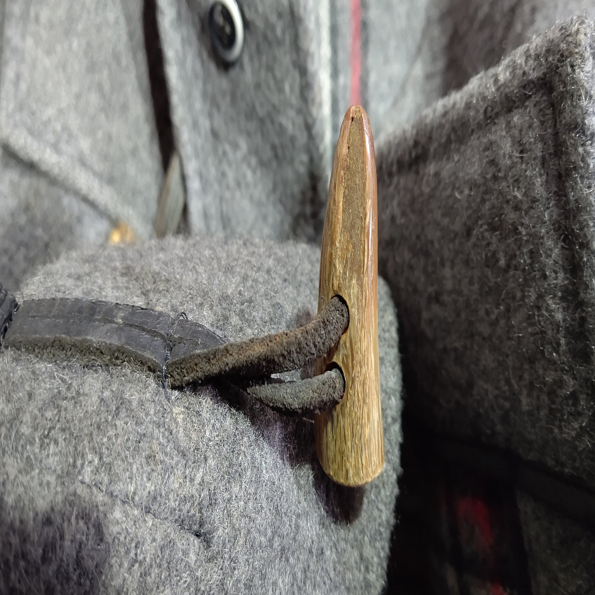 トグルボタンは本角のようだ、取り付けられている革ひもも劣化している物が多い中で、すこぶるコンディションが良い。