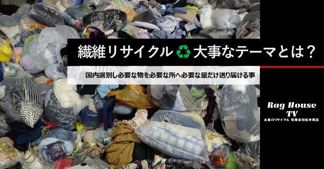 ラグハウスとは古着のリサイクル工場の事で、和名は襤褸屋(ぼろや)です。ラグハウスでは、回収された古着を主に次の3種類の用途に選別してリサイクルしています。