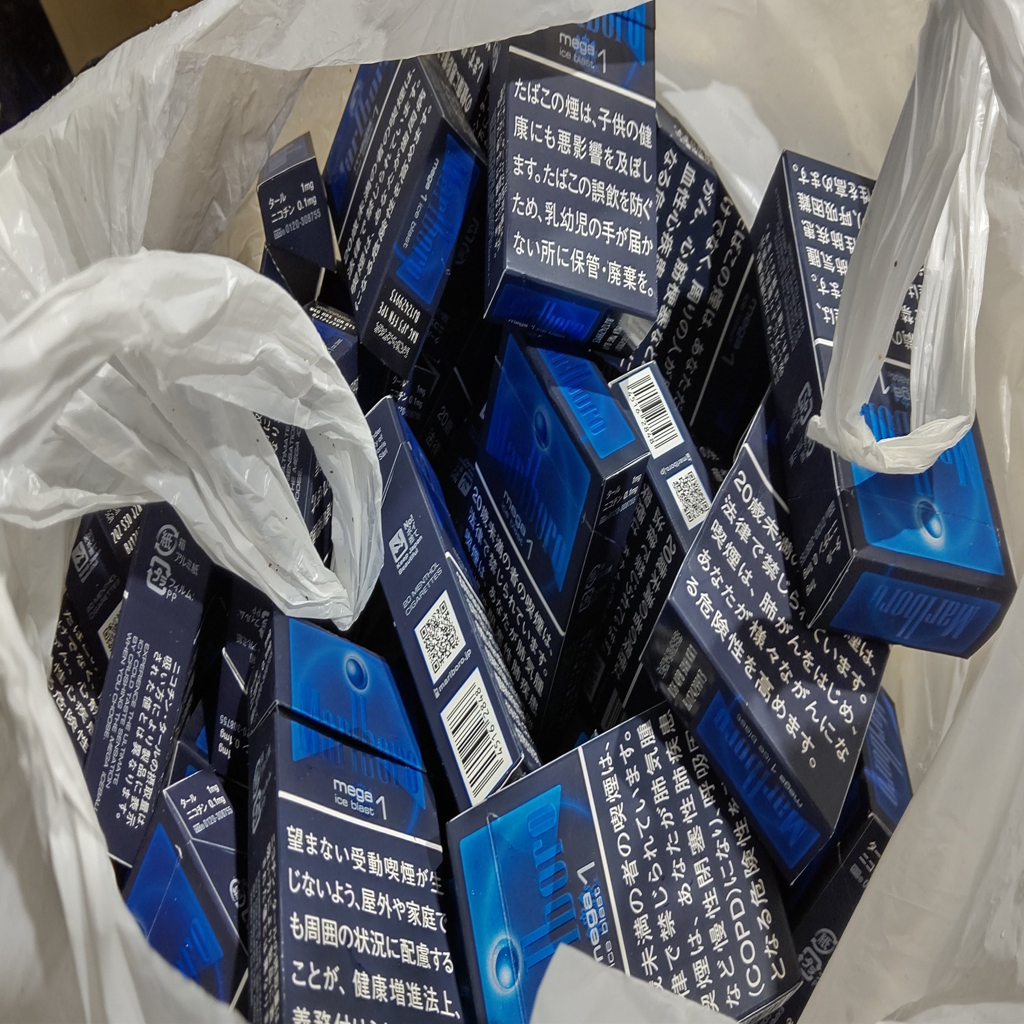 ▲こちらの画像は、先日の古着回収に混入していたタバコの空き箱です。レジ袋に入っていますが、持てば軽くてカラカラと音もします。