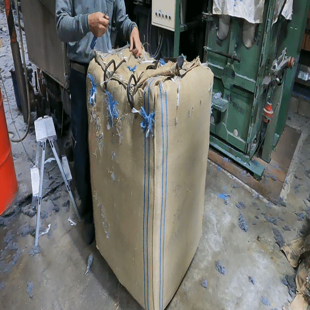 不要になった衣類や、縫製工場から出るハギレ(裁断くず)などを専用の機械で細かく砕き、もう一度**「ワタ(綿)」の状態に戻すこと**、あるいはその戻したワタのことを指します。