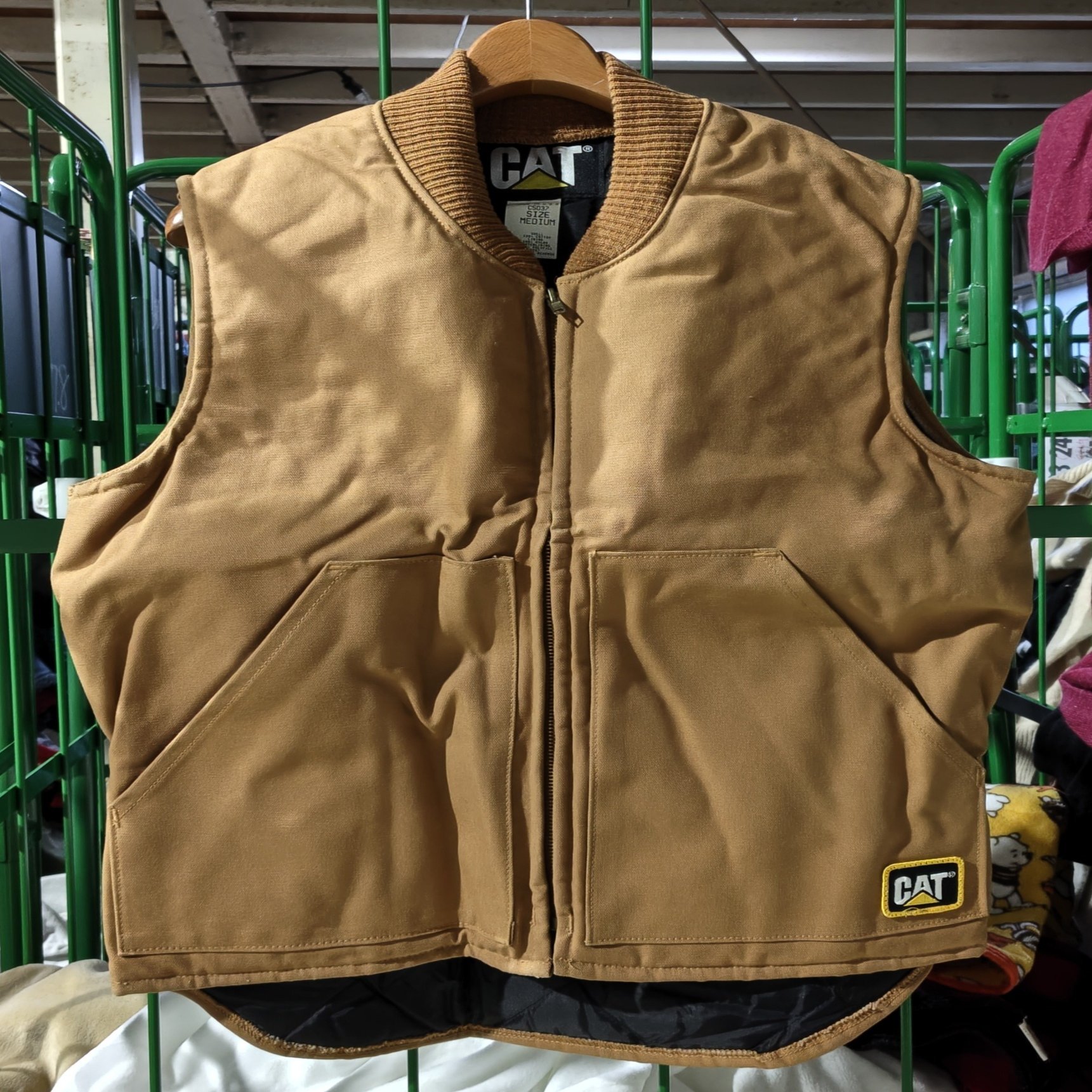 今回レスキューしたのは、CATのブラウンダックベストだ。耐久性のある生地で屋外作業には最強のワークウェア!