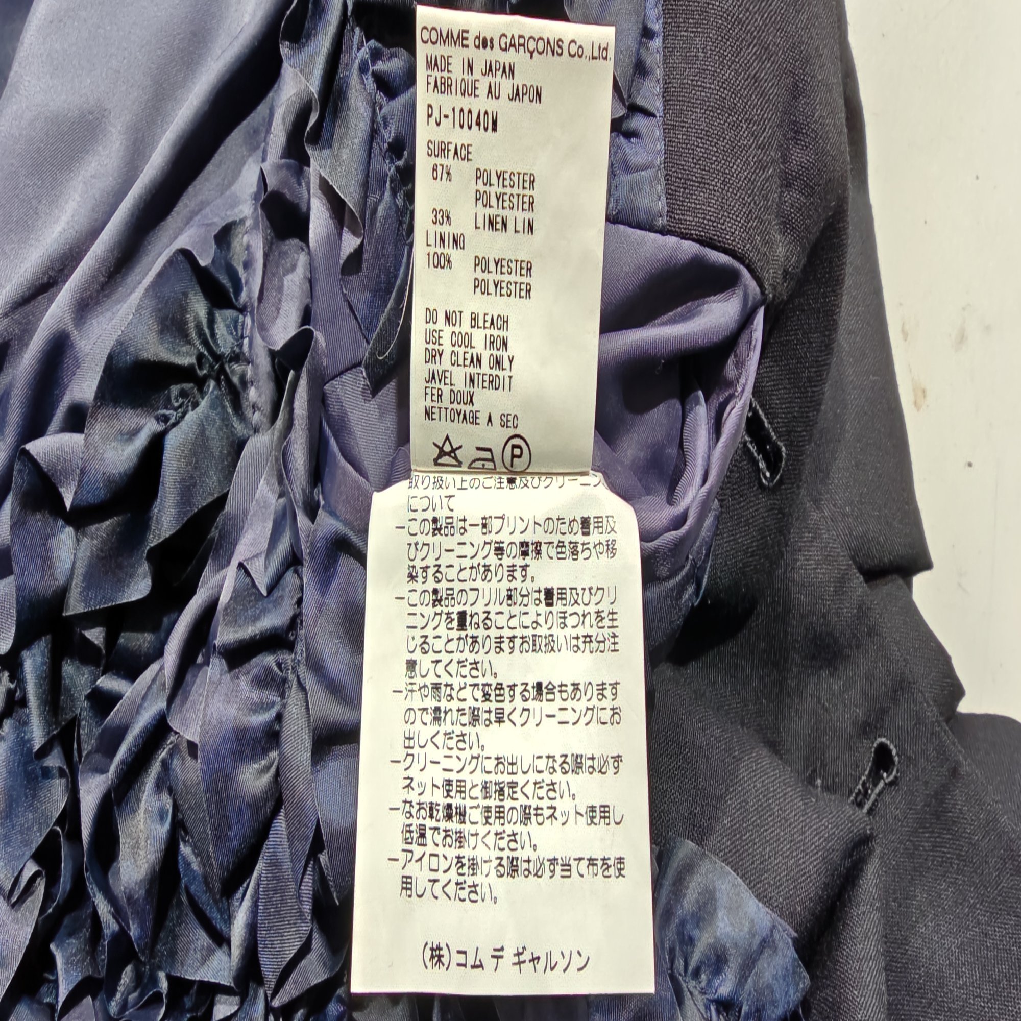 全く普通のジャケットのようだが、ラッフル装飾で裏地がすごい。