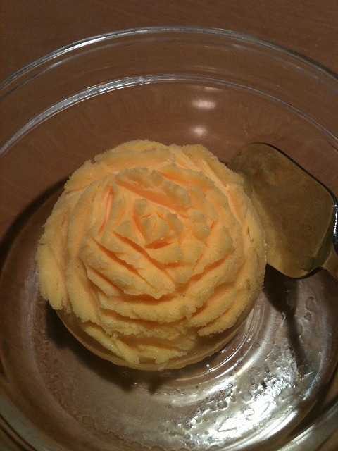 焼肉屋さんで出てくるシャーベットをサクサク削ってちょっと彫刻家気分を味わっています。