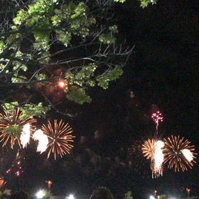 花火をバックにねぶたが海からやってくる!