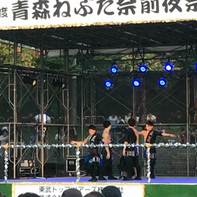 青森ねぶた前夜祭しか見れない。夕焼けの海とねぶた!