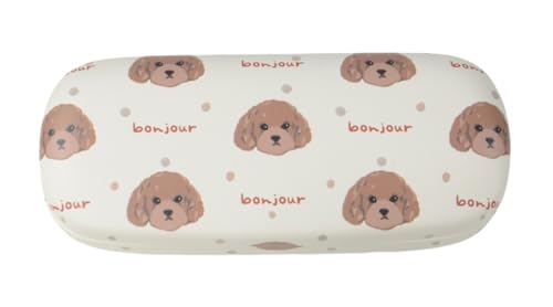 パール(Pearl) メガネケース ハード クロス付 ドット柄 おしゃれ レディース メンズ 兼用 合皮製 バネ式 開閉 PCメガネ 老眼鏡 プードル イヌ フレンズヒル アイボリー Amazon(アマゾン)