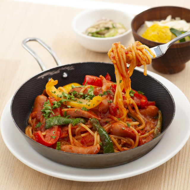 パスタにお味噌汁も