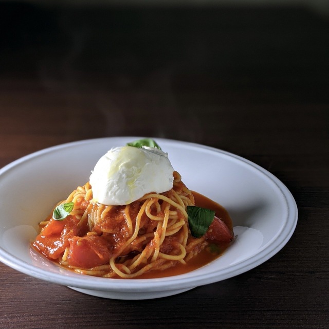 トマト、オレガノ、にんにくのマリナーラソースで
