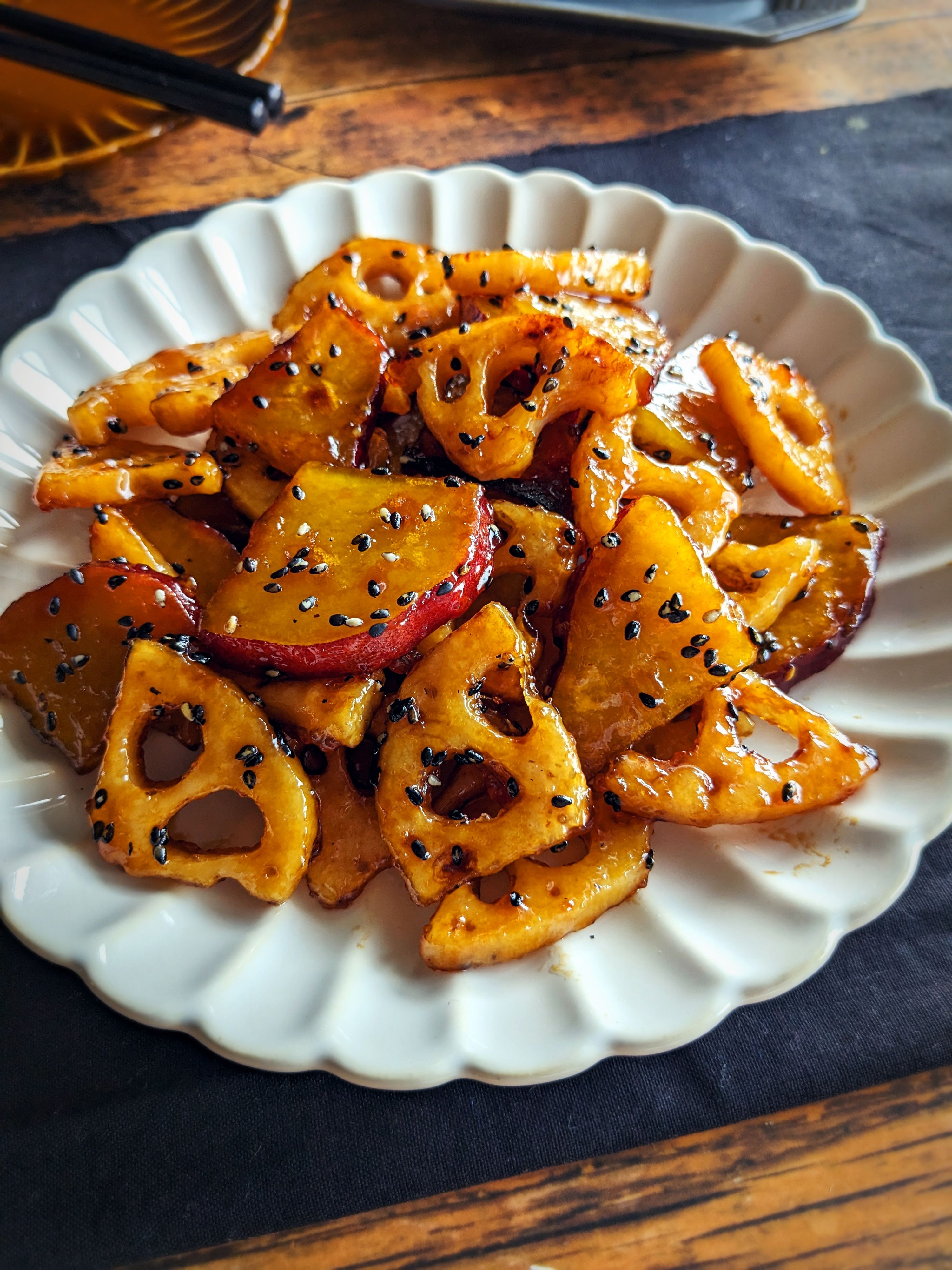 さつまいもと蓮根の甘酢炒め~お芋とレンコンの食感の違いが楽しめる甘酢炒め こんばんは 先日の副菜 さつまいもと 蓮根の甘酢炒め ほくほくのサツマイモと シャクシャクのレンコンの 食感が楽しい 甘酢で食べ始めたら 止まらない レシピはこちら 【さつまいもと蓮根の甘酢炒め】やみつきの食感と味♡【さつまいもと蓮根の甘酢炒め】やみつきの食感と味♡ by スギヤマ ヒサエ \ほっこり美味しい♡秋の和おかず🍁/ 【このレシピのポイント💡】 ✅やみつきになる甘酸っぱさ ✅覚えやすい味付けで作りやすい (しょうゆ:砂糖:酢=1:1:1) ✅ホクホクのさつまいもにシャキシャキの 蓮根がよいアクセント◎ さつまいもと蓮根の食感が楽しい一品です。 甘酢…oceans-nadia.com ご馳走さまでした