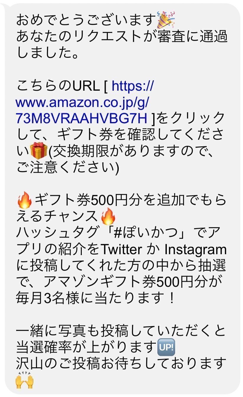 ギフトルの姉妹アプリ「ギフチャ」もおすすめです!紹介コード「757347084」を入力して、アプリをダウンロードするだけで、ポイントが貯まり、500円分のAmazonギフト券が手に入ります。