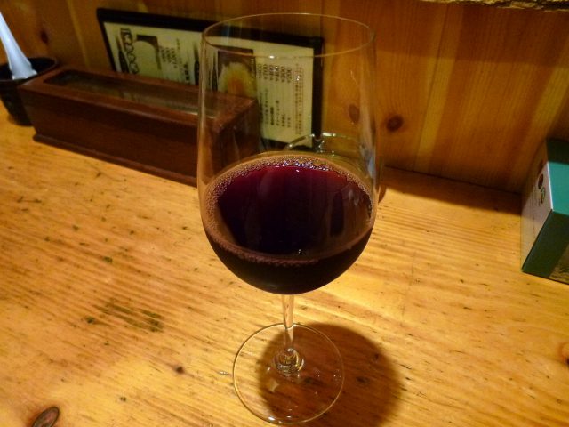 同行者は赤ワインを楽しみ中。ラーメン好きの自分とワイン好きの同行者、お互いが好きなものを楽しめる、ある意味貴重なお店でした♪