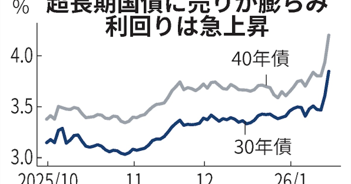 超長期債利回り急上昇、40年債初の4%乗せ 財政懸念で売りに拍車:日本経済新聞