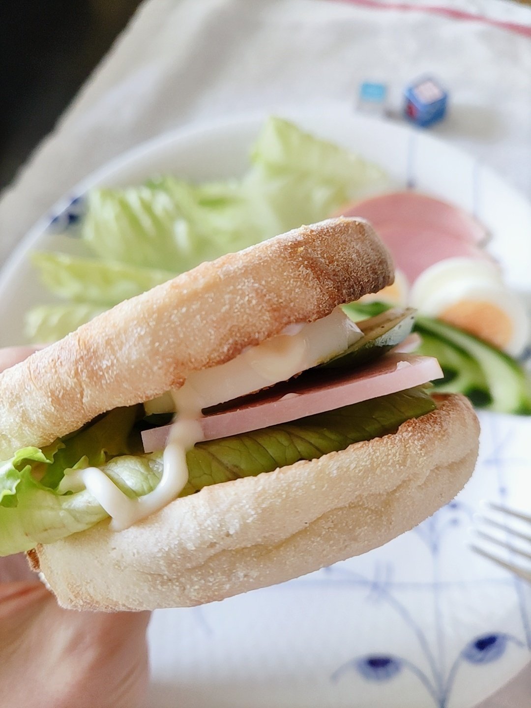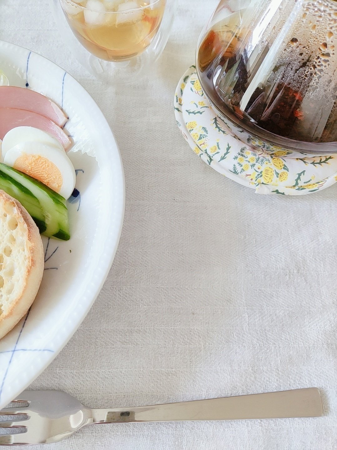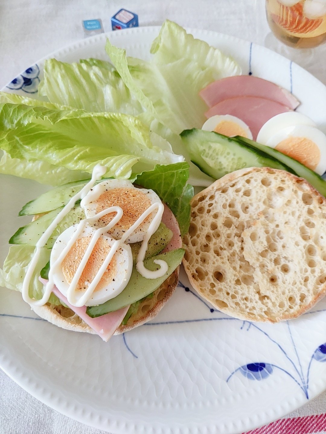 ご飯を食べたかったけれど、お米を炊くまで待てないので(食欲…!)、残っていたイングリッシュマフィンを焼いて野菜を並べた朝ごはん。