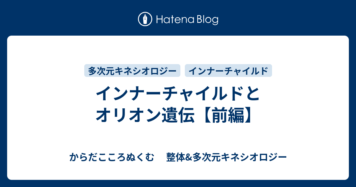 インナーチャイルドとオリオン遺伝【前編】ブログ更新しました!インナーチャイルドとオリオン遺伝【前編】 - からだこころぬくむ.*✿ 多次元キネシオロジー&整体サロン皆さまこんにちは。 今日はインナーチャイルドとオリオン遺伝の関係性について書いていこうと思います。 オリオン遺伝とはなんぞや?という方へ↓ 多次元キネシオロジーコース再開とオリオン遺伝とインナーチャイルド - からだこころぬくむ.*✿ 多次元キネシオロジー&整体サロン ちなみにインナーチャイルドとは【大人の中にいるこどもの部分】とされ、大人になっても変わらな…rapha8741.hatenablog.com