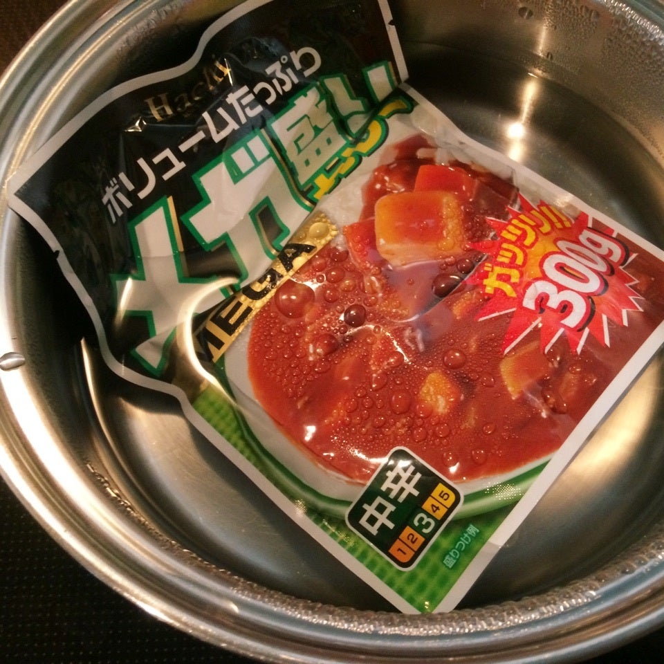 前日の残ったカレーでもいいし、レトルトでもいい。