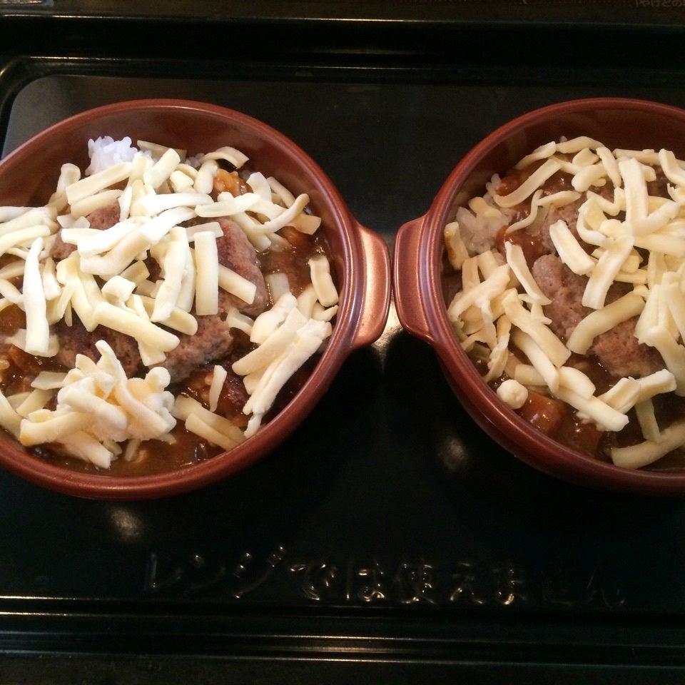 ハンバーグにケチャップを少しつけてチーズを散らす。