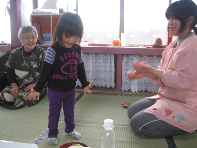 わらべうたは、ことばの発達に役立つばかりでなく、1対1のかかわりを