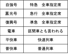 ![]() ▲列車の種類 |