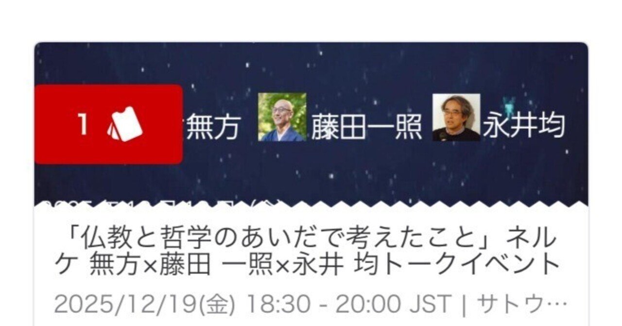仏教3.0のさらなる展開はあったのか?|佐藤守徳2025年12月東京朝日新聞社本社の2Fで「仏教と哲学のあいだで考えたこと」という鼎談会がありました。 演壇者は、ネルケ無方、藤田一照、永井均のお三方でした。 主催は春秋社で、ネルケ無方さんの『人生というクソゲームを変えるための哲学と坐禅』と、藤田一照さんの『お坊さんになりたかった哲学者と哲学者になりたかったお坊さん「有時」を遊ぶ』(どちらも長~いタイトル…note.com