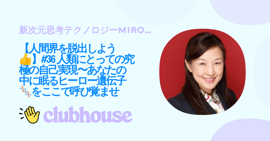 【人間界を脱出しよう👍】#36 人類にとっての究極の自己実現〜あなたの中に眠るヒーロー遺伝子🧬をここで呼び覚ませ - 新次元思考テクノロジーMIROSSWith 鈴木優子, 名倉 弘恭 and 2 others, hosted by 新次元思考テクノロジーMIROSSwww.clubhouse.com