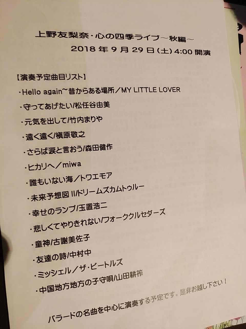 アコースティック生演奏バージョンだったので、譜面台登場で丁度お顔にまる被り( ゚Д゚)