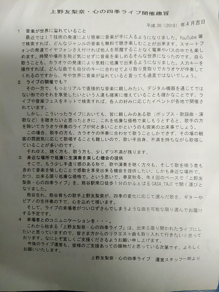 熊谷で上野さんのライブにゲストで参加した時のご縁のギタリストさんたちの演奏にのっての歌唱