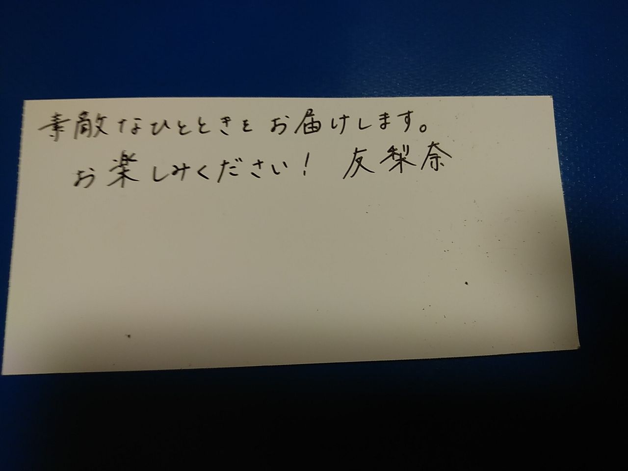 クリアファイルで中に可愛いイラスト満載のご挨拶と手書きのサインカードが入っていました