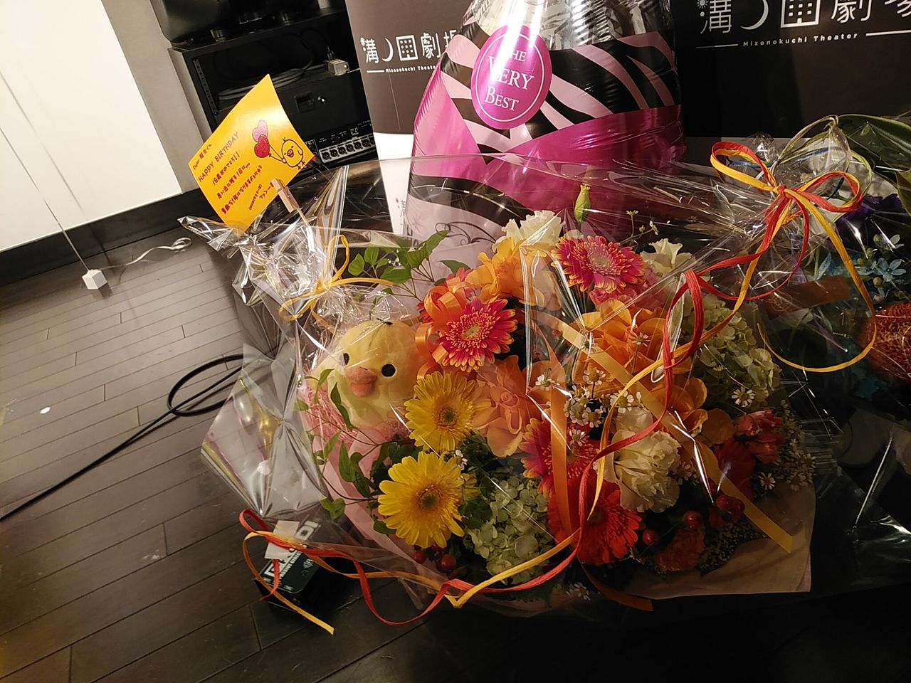 キイロイトリが居るお花籠はファン一同から龍生さんへ^^