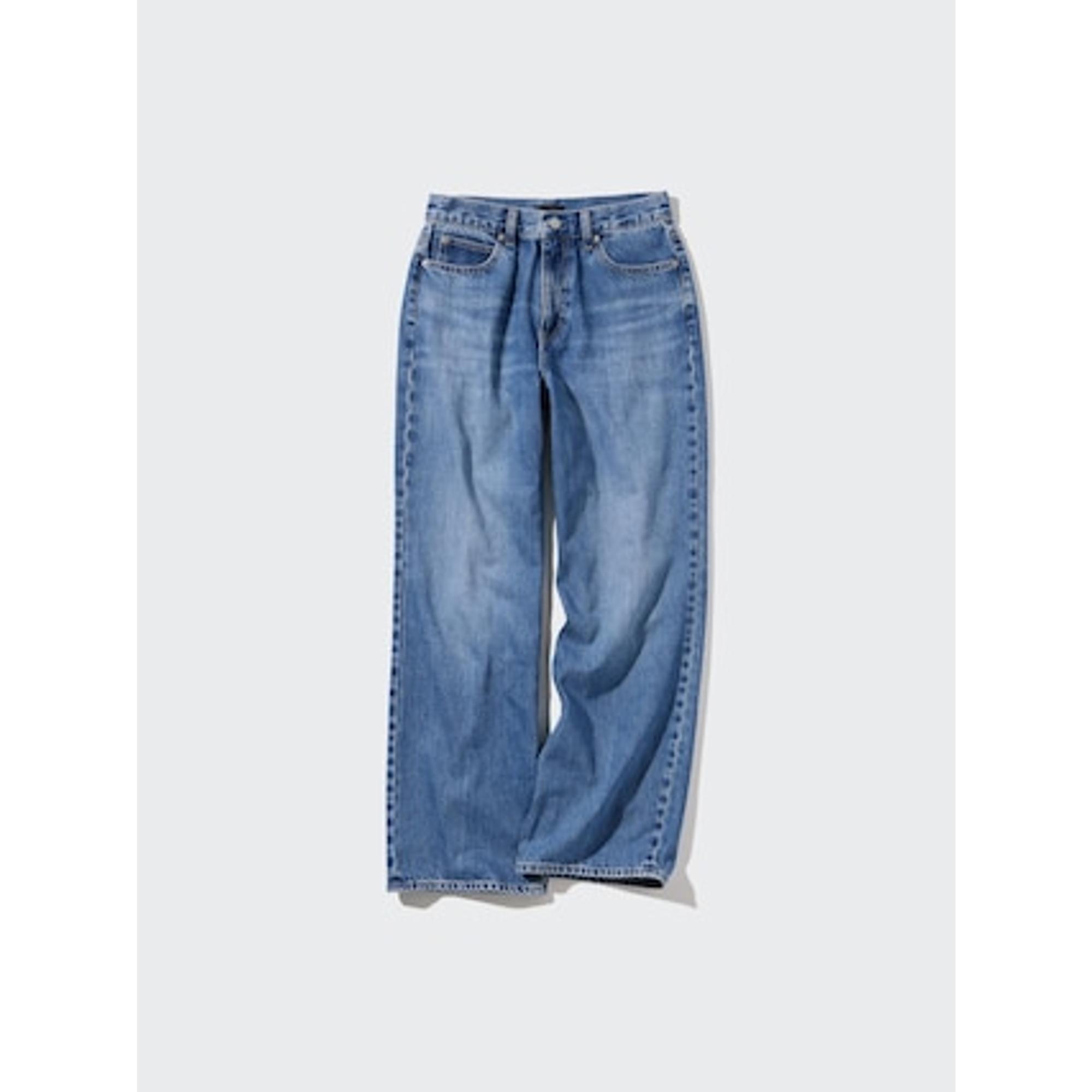 eはユニクロのワイドストレートジーンズです。