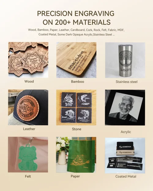 Whether you're looking to personalize a painted dog tag, create custom leather keychains, or add a unique logo to wooden coasters, the Atomstack P1 Mini Portable Laser Engraver 5W handles it all with impressive precision.