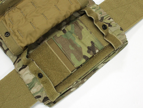 背面のベルクロとドットボタンで固定してあるフラップをペッロとめくると、カマーバンドを固定するベルクロパイル面があります。