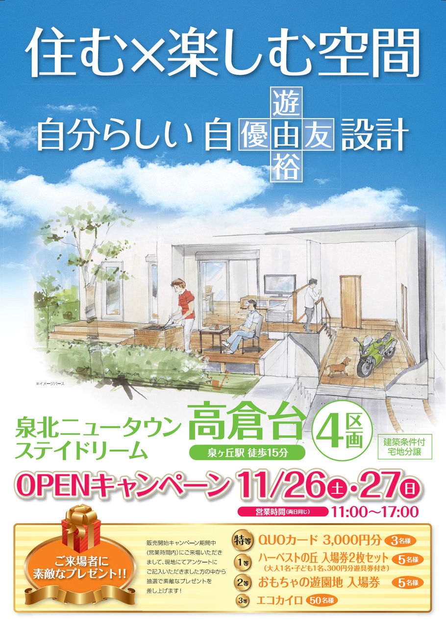 このチラシをご覧になれない方の為にステイドリーム高倉台のチラシです!11月26日(土) 27日(日)