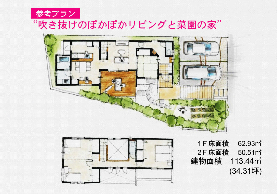 ステイドリーム高倉台4号地の吹き向けのぽかぽかリビングと菜園の家!!プランです