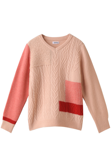 COOHEM PATCHWORK KNIT PULLOVER navy