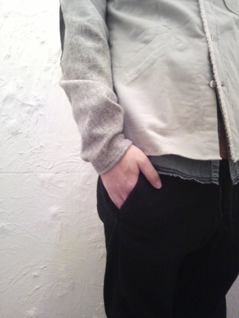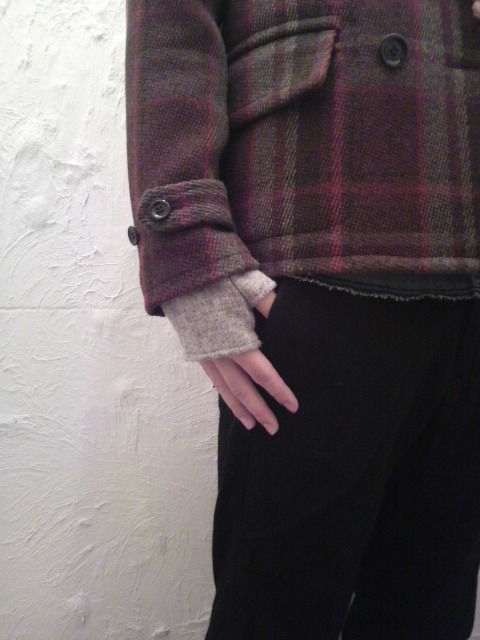 袖部分のコットン生地とウール生地の