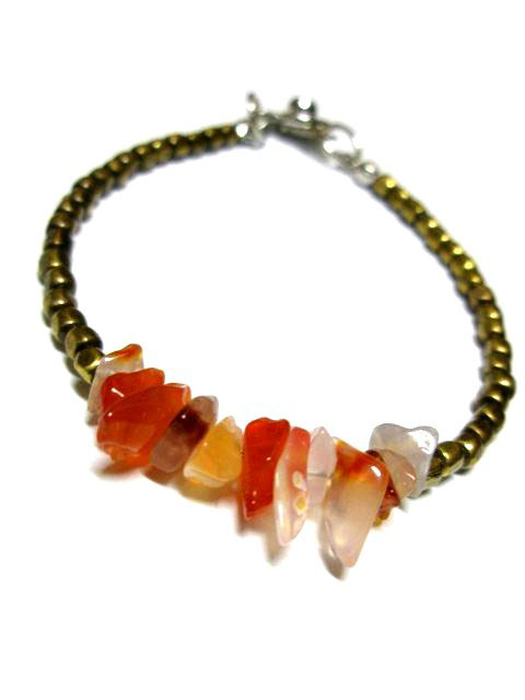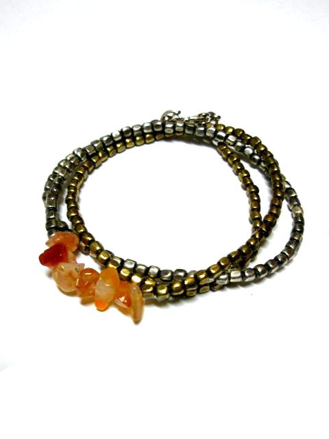 アンティーク調のブラスビーズをアンティークゴールドとアンティークシルバーを使用し、ネックレスの中心をランダム型のパワーストーンビーズを使用してあります!!