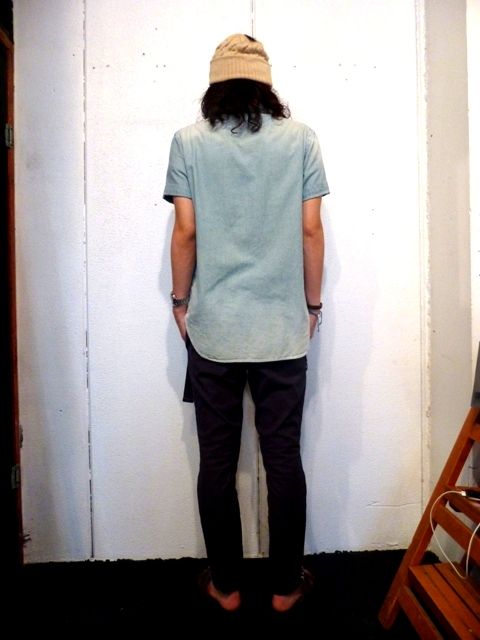 アンティーク調のムラ糸感が特徴な5ozシャンブレーを使用し、製品でUSED加工を施してあります。