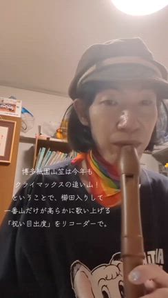 【動画】明朝が「追い山」ということで、リコーダーで「祝い目出度」
