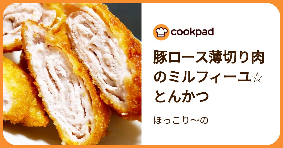 豚ロース薄切り肉のミルフィーユ☆とんかつ by ほっこり~の「豚ロース薄切り肉のミルフィーユ☆とんかつ」の作り方。薄切り肉を巻いて作るミルフィーユカツ。お手軽2ステップ衣と少ない油でジューシー!やっぱり揚げたてが一番おいしいですね♪ 材料: 豚ロース薄切り肉、塩、こしょうcookpad.com
