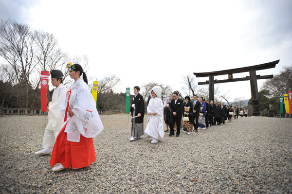寒風吹く中、厳かに挙式がとり行われました。
