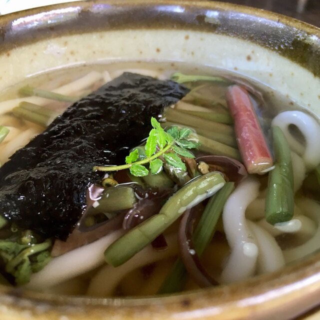 鮎釣りのおじさんたちを眺めながら食事ができる