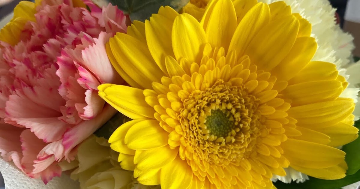 お花のプレゼントとともに、姪っ子ちゃんからはお手紙(きっと「おめでとうと」かいてあるであろうカラフルな曲線)が届きました。