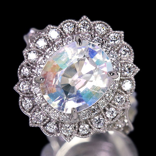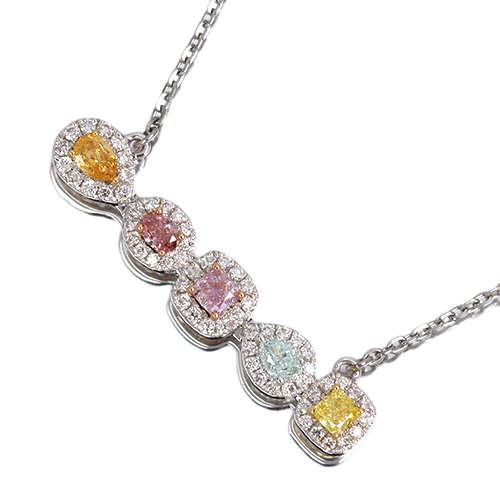 デザインとセッティング:格式高い「取り巻き(ヘイロー)スタイル」この稀有な宝石を支えるのは、伝統的かつ王道のデザインです。バチカン(チェーンを通す部分)にもダイヤモンドをあしらうことで、胸元全体に縦のラインの輝きをプラスしています。ダイヤモンドのブリリアンスとファイアも特に豊かでメインストーンを取り囲むダイヤモンドは、一粒一粒が主張するほどのサイズ感があり、高品質なラウンド・ブリリアント・カットが施されています。コンクパールの「とろりとした艶(ラスター)」に対し、ダイヤモンドの鋭い「金剛光沢(アダマンタン・ラスター)」と虹色の輝き(ディスパージョン)が対比も美しく互いの美しさを引き立てる可憐さとラグジュアリーさも抜群のお仕立てです。