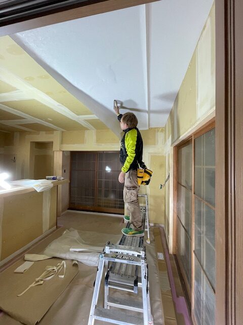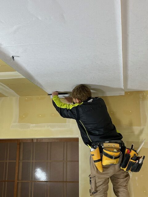 そして、先ずは天井からクロスを貼っていきます。