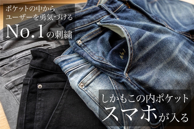 No.1、Only Oneを表す『横一文字の黒刺繍』と、ポケットの中にお守りのようにユーザーを勇気づける『No.1の金刺繍』を忍ばせています。