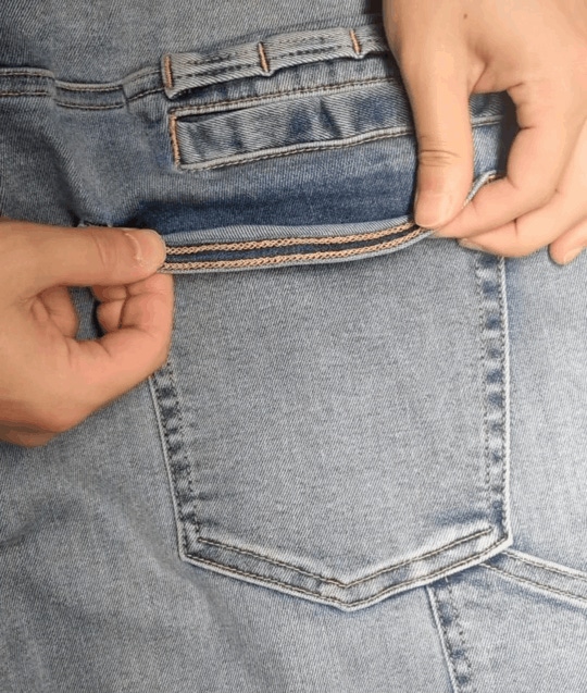 ソフトな風合いと約2倍も伸び~るGUM-GUM JEANSの素材は加工の際、生地が動く(伸び縮みする)ので、コットン100%の伸びない生地に比べ非常に加工が難しいです。