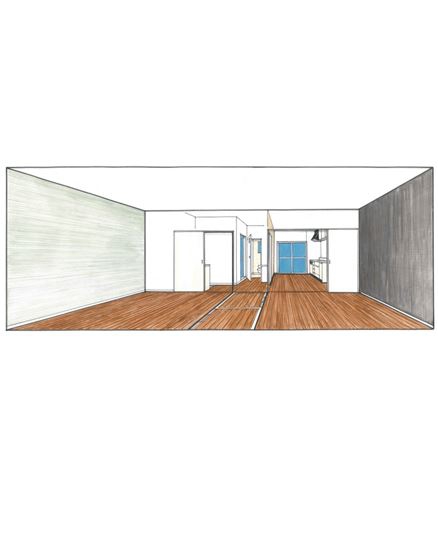 広さ20畳のリビングを、あえてシンプルな色合いでまとめ、奥行きを感じるようにしました