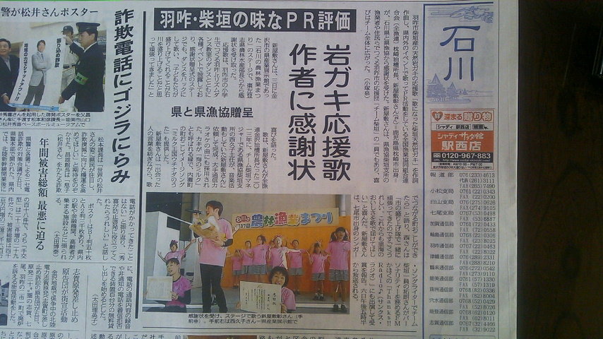 10月3日は石川県の農林漁業まつりに出演します。