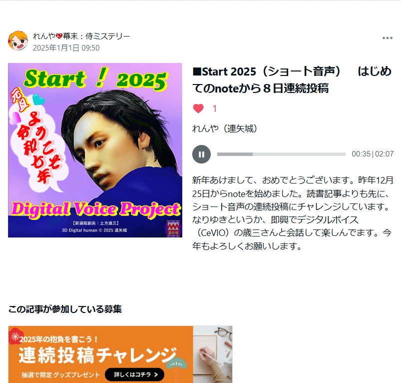 💖Start 2025(ショート音声)はじめてのnoteから8日連続投稿💖テキスト